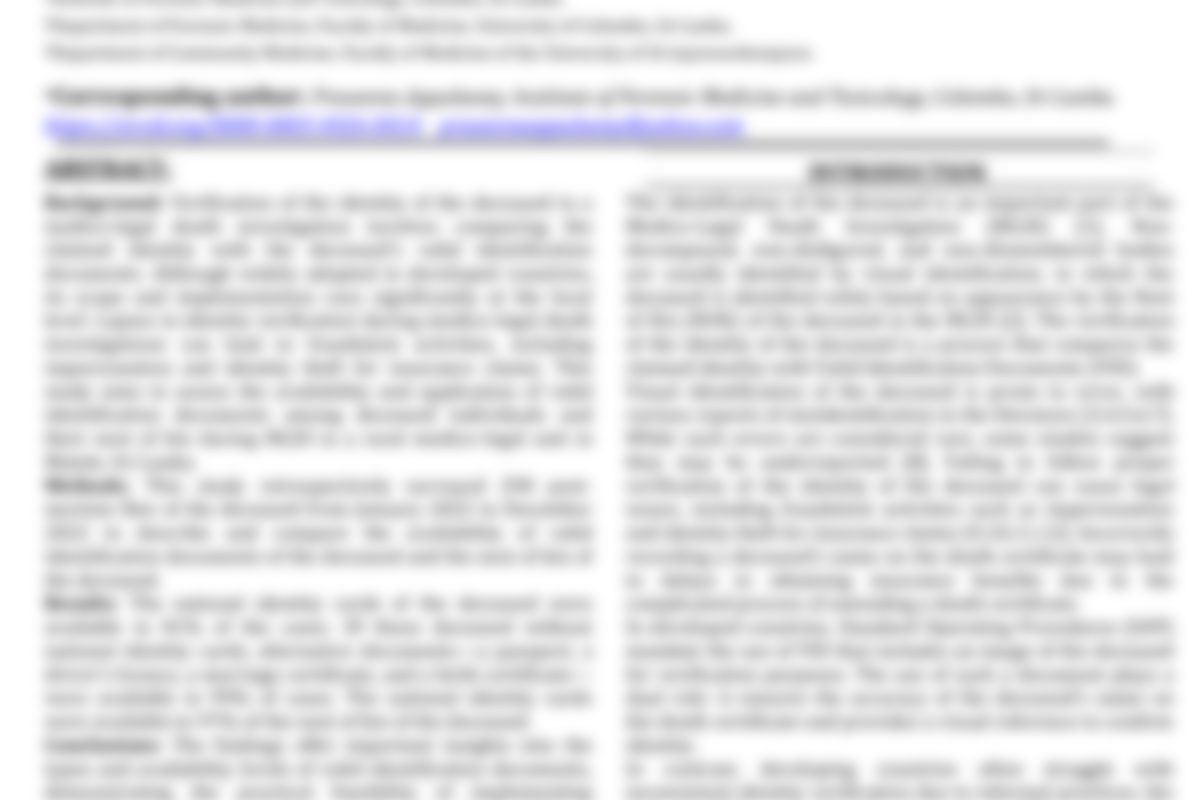 Bridging the Gap in Post-Mortem Identity Verification of the Deceased in Sri Lanka: Insights from an Audit of Medico- Legal Cases