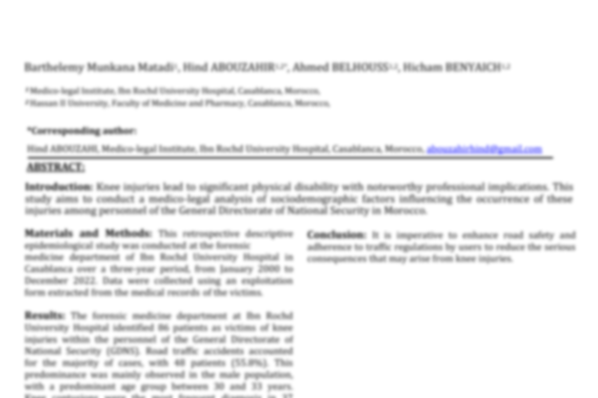 Retrospective Study of Work-Related Knee Injuries: Analysis of 86 Cases Among the Personnel DGSN Received By MLIC